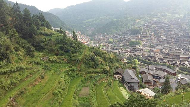 5、苗寨入口。6号风雨桥的右手边是麦田连着梯田,不要错过了。