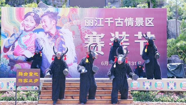 景区内不止有丽江千古情和丽江恋歌两场表演,还有很多的小表演也很精彩,即使等待的时间也不会无聊。牦牛舞的表演,演员们穿上厚重的牦牛服装,在阳光下憨态可掬。