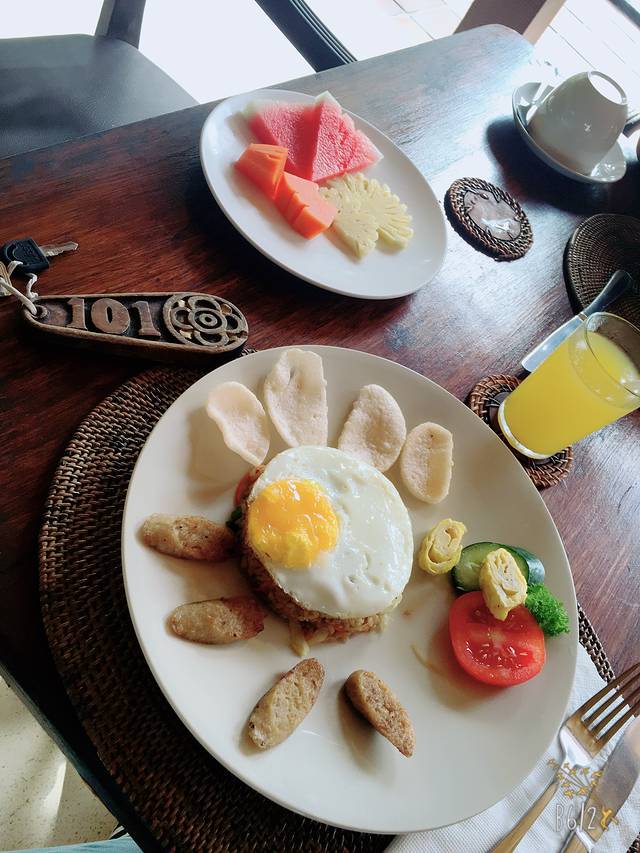 我们当时在机场里面由于只是临时过渡一晚,所以就选了一间经济实惠的库塔宜必思酒店,酒店很干净,户型和国内的大致一样。酒店合人民币150一晚,不含早餐。酒店是有自助早餐的,可以另外付费,65000IDR/人,水果,印尼炒饭/炒面,果汁,虾片一应俱全。