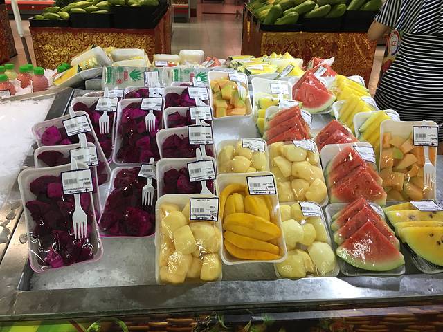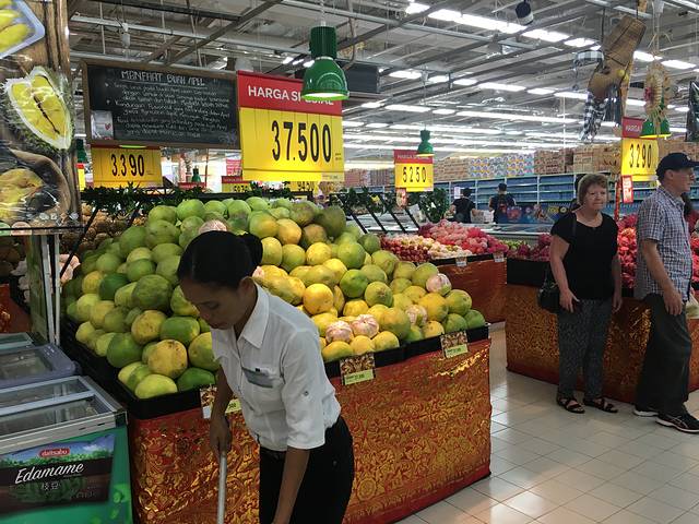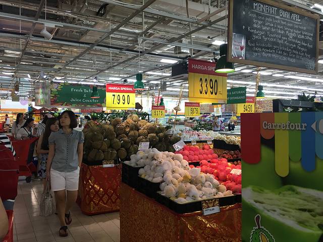 提前预定了vivian私家游的包车,早上9点半司机就到宾馆大堂来我们了。行程第一站,我就安排了家乐福,因为我要发掘一下巴厘岛到底有什么好吃好喝的。司机师傅给我们送到门口,便到停车场等我们了。家乐福在三楼,一进门卖的是手信,有香皂,精油,身体磨砂膏,巴厘岛当地特色木雕。后边还安排了两次来家乐福,所以今天主要是来买水,零食和水果的。超市相当贴心,红心火龙果,西瓜,菠萝,芒果都有切好放在盒子里的,吃起来很方便。 喜欢喝果汁的也不要错过啦,超市有鲜榨的红心火龙果汁,牛油果果汁,菠萝汁什么的,个人最爱红心火龙果果汁~~