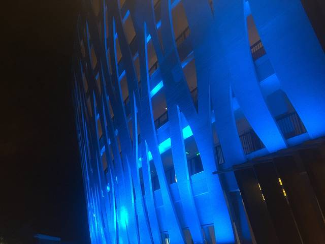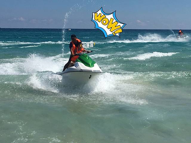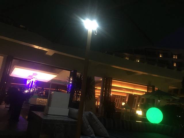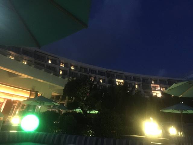 坐电瓶车来到酒店专属沙滩~晚上很凉快啦
