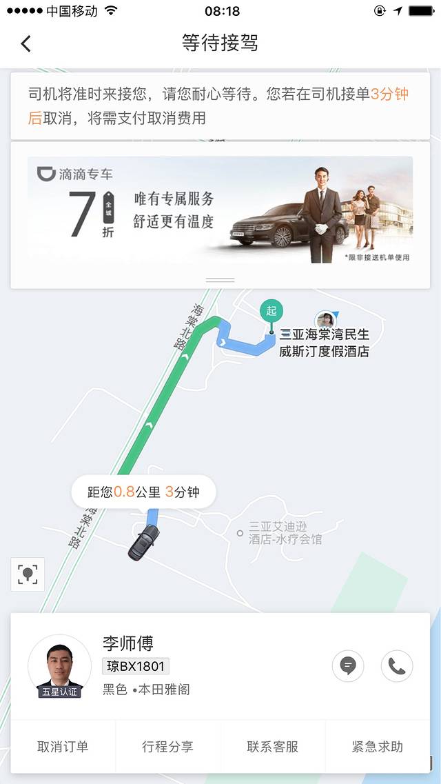 其实可以走路过来,但是太热了,打出租车司机嫌弃太近,于是打了专车过来,就在免税店旁边