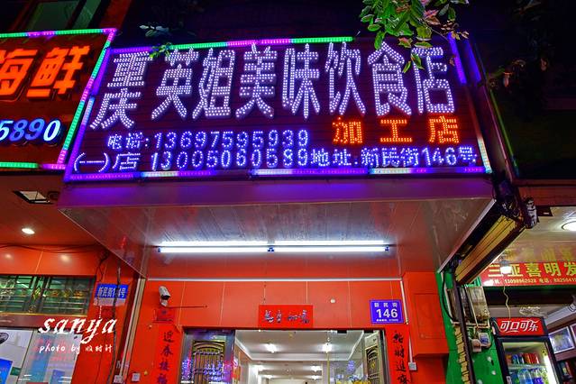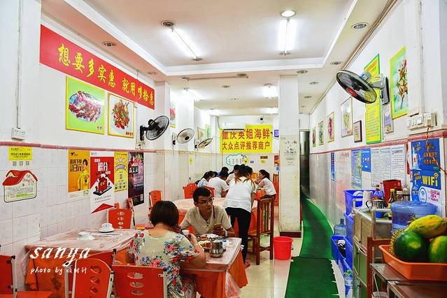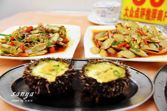 三亚是个海鲜遍地的地方,街边的各种海鲜饭馆抬头可见。不过价格不一,良莠不齐,但是到了三亚,即使价格高,建议大家还是不要错过这里各种生猛海鲜。三亚各种鱼、虾、贝、蟹真是应有尽有,而且很多都是当天刚从海里打捞上来的,活蹦乱跳,海鲜的新鲜度高。吃海鲜首推第一市场,也是我们此行连续去吃了2次海鲜的地方,这里海鲜品种多、新鲜(买的都是活的)、客流多、热闹、可以逛夜市、公交方便,各种高中低端的海鲜都能在这里买到,注意这里晚上收市较早,要买海鲜下午5点多前就要去。周边加工店云集,主要集中在新民街和椰风巷两条街,新民街加工店比较多,很热闹,椰风巷在新民街对面,相对安静一些。在市场上选择后可以自己到加工店加工。很多人怕密爱海鲜宰客,推荐关注下三亚旅游局的官方微信公众号:sanyatour2013,每天都有三亚海鲜的最新价格,去之前大致看看做到心中有数,在买海鲜时就不至于被骗得很离谱了,还有你去第一市场买海鲜的时候,总有些大姐大妈们一路跟着你,叫你去她家店加工,甚至你刚买了海鲜付钱后直接就帮你拎起海鲜跟着你走了,这时你不要不好意思拒绝,坚决自己选择加工店,她带去的店算来算去的加工费往往比你买海鲜的费用还高,我们的遭遇就是这样,此时庆幸我们没有继续不好意思忍着痛承受,而是出门选择了一家网友推荐的,点评网站口碑高的,算下来加工费只要她家一半的价格。出行在外真是防不胜防啊,对于三亚的美食,个人觉得很多地道、好吃的美食大部分都是路边摊或者路边大排档,海南本地很多好吃的餐厅都是露天的,超级亲民那种,往往那种的顾客是爆棚的。