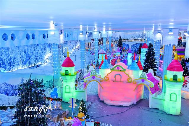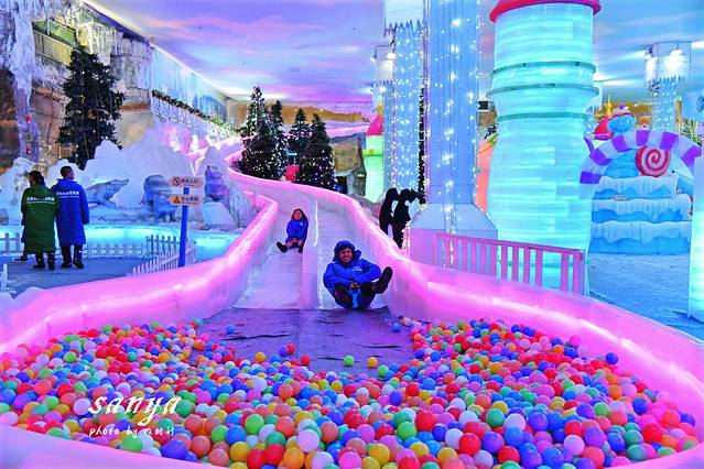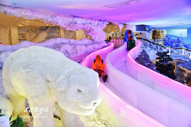 PS:进入冰雪世界可以选择租雪鞋和护膝,个人觉得必要性不大,因为玩起来真的不冷,而且游玩项目虽然刺激但安全系数很高的,在滑冰道、雪场都有工作人员指导和把关,尤其适合带小孩来玩,玩累了还可以观赏五颜六色的冰雕,或者去冰原魅影、冰窟魔音探索。由于室内温度太低,注意保护相机镜头,出来后镜头上往往要结雾气,待时间久了再用卫生纸或擦镜纸轻轻拭去就好。