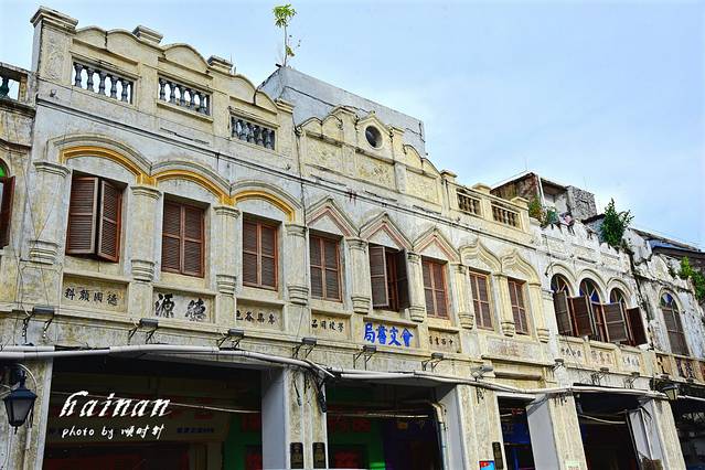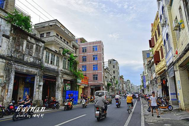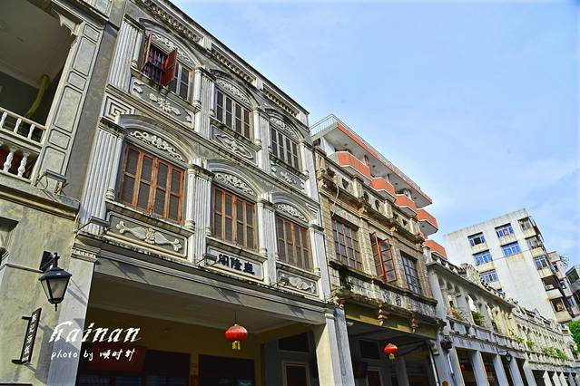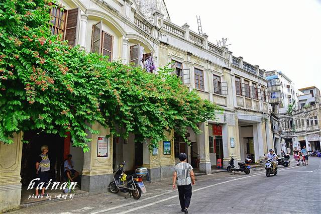 从观澜湖华谊冯小刚电影公社出来后到了今天最期待的骑楼老街,海口骑楼主要分布于海口市得胜沙路、中山路、博爱路、新华路、解放路、长堤路等老街区,街道两旁是近百年历史的充满南洋建筑风情的骑楼。在老街区骑楼的样式建筑达200多座,中山路沿街两旁保留的骑楼样式最多,约有39座。老街两旁白色的墙面上都细致雕刻着具有中国特色的文字和吉祥的图案。老街都是免费开放,距离较长,海口有共享单车,推荐在老街慢慢骑行,欣赏街边建筑古朴的美。