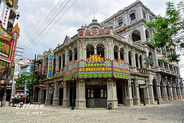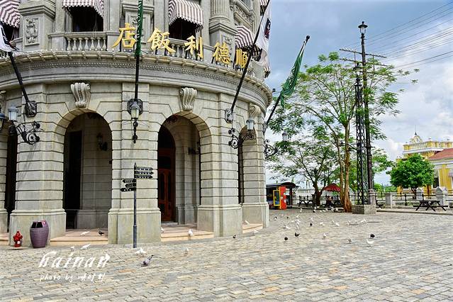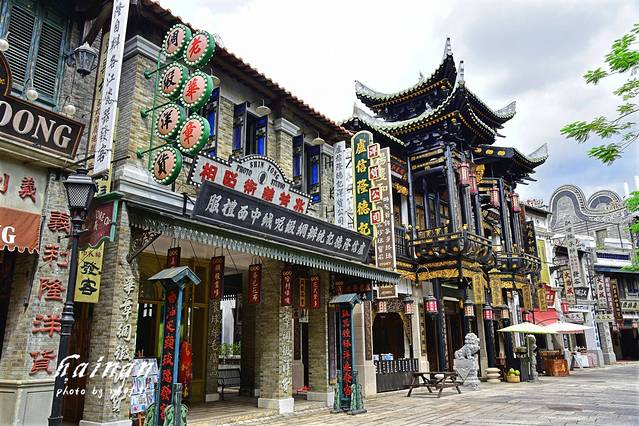 结束五公祠游览,看看时间还蛮早,决定去观澜湖华谊冯小刚电影公社转转,个人对这类影视城尤其是民国风情的还是很有兴趣,这个电影公社是全球第一个以著名导演命名的,集实景旅游、实体商业、影视拍摄三位一体的大型电影主题景区,呈献出二十世纪百年间中国城市街区的光景变迁。门票网上预定128元,好处是在开放时间内随时定随时可以取票,门票主要包含1942风情街和南洋风情街。进入大门是长长的影人星光大道,集中了80位国内著名影视明星手印和签名,其中,大部分明星都亲临过电影公社,漫步影人星光大道,感受浓浓的星光,与自己的偶像的手印不期而遇,很是惬意。我们先游览了南洋风情街,这里集合了70幢中外建筑风格交流辉映的南洋风格建筑,富有时代感的牌坊、码头、钟楼、小桥、教堂等建筑特别有民国感。
