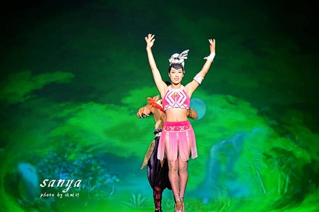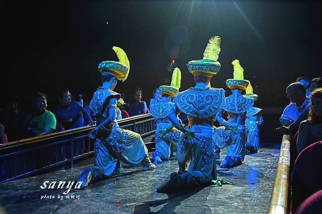 晚上8点,我们选择的《三亚千古情》第三场演出如约上演,整个景区最大看点莫过于这场同名的大型歌舞秀《三亚千古情》,《三亚千古情》是获得海南省五个一工程奖的旅游演艺作品,品质很有保证,而且在三亚可以说没有比这更震撼的演出了。表演分为热场《炫动三亚》、序幕《落笔洞》、第一幕《鹿回头》、第二幕《冼夫人》、第三幕《海上丝路》、第四幕《鉴真东渡》、尾声《美丽三亚》。表演唯美、震撼,立足于鲜为人知的三亚万年史,这里能听到落笔洞的万年回声,这里有鹿回头的美丽传说,这里有巾帼英雄冼夫人的荡气回肠,这里有海上丝路的异域风情,这里能看到鉴真东渡时的惊涛骇浪…。最大亮点是在撼动你的视觉与听觉神经的同时,突出一个“情”字,整个剧场的每一个角落都可以是一个舞台,将观者更身入其境的带入到演出中,以致于能让你全身心的投入到观看中。我觉得一场精彩的演出最重要的是要带动观众的情绪,能够身临其境的融入表演里,千古情在这一点上做得很极致,把三亚万年的历史、万年的“情”,通过舞台艺术的手段立体地展现给观众。整场演出看下来有浪漫,有感动,有悲愤,有惊叹,有欢喜,有骄傲,各种情绪贯穿,尤其是第二幕《冼夫人》,看完后鼻子特别酸,跟台上的主人公同悲同喜。