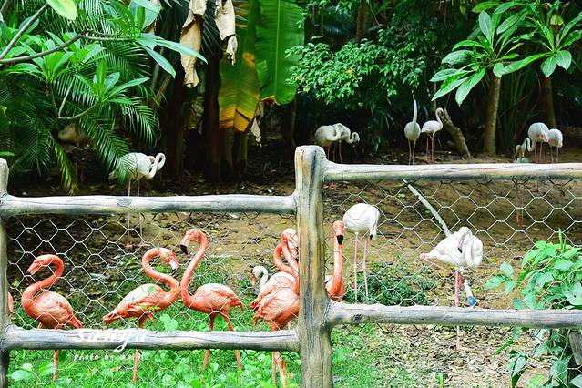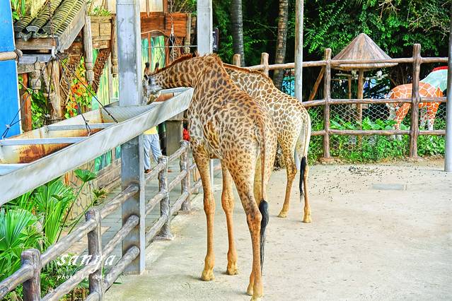 出了冰雪世界我们径直到了三亚宋城彩色动物园,这个动物园虽然不大,但是动物种类非常多,而且能看到很多如长颈鹿、羊驼、浣熊、亚达伯拉象龟、袋鼠、松鼠猴、火烈鸟、红嘴巨嘴鸟、红绿金刚鹦鹉等热带动物,非常有特色。动物园内无论是动物还是环境,处处突出了彩色,每一个细节都是匠心的体现。动物园内的规划布局非常得当又紧凑,利用旅人蕉、小叶垂榕等多种热带植物,形成了百草园和热带植物体验长廊,一方面为小动物营造了自然的生活条件,同时行走其间能发现身边、头上都是随意都是活泼乱跳的动物,四处都装有保护栏,可以放心玩,感受到热带植物氛围还可以与动物“亲密接触”,看那些萌化你心的萌宠就在身边与你互动,发现在动物园散步才是正经事,是的,此刻我们仿佛都是回到童年的小孩子了。