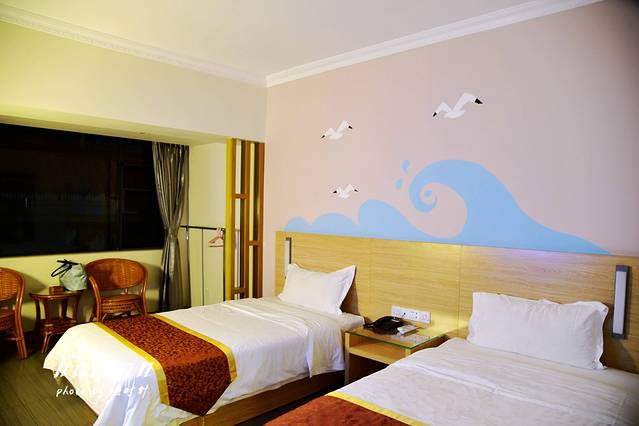西岛下午5、6点就要闭岛,当然住在岛上的游客不受此影响。回到酒店提取行李都7点了,三亚的三日之旅已完美结束,因为明天晚上的飞机是从海口飞重庆,所以也给海口这座历史文化名城安排了一天的短暂时间领略,晚上从三亚坐动车到了海口东站,不得不说从三亚到海口的动车车次之多,几乎每个时段都有多趟,购票完全不成问题,速度快点的1个半小时就能到海口,票价100元。晚上入住海口万华路的Q+海口新万盛宾馆,酒店位处椰海成荫、高楼林立、秀丽如画的海口市中心,从海口东站过去不远,性价比较高,室内空间也较大,墙上有美丽的手工绘画。