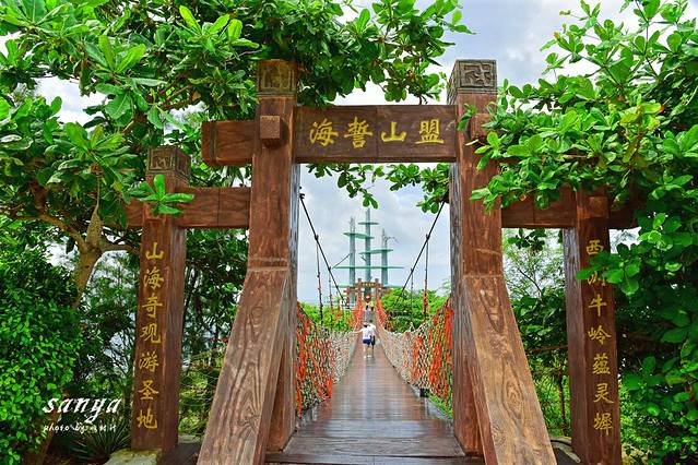 南山文化旅游区门票成人票145元,网上预定115元,售票处有专门的网络取票窗口非常方便。进入景区后首先看到的是不二法门,后面是一实法门,“不二法门”是一个由大型南北朝风格建筑六楼、建筑、群像雕塑、经幢、石刻、浮雕、园林组成的景点。这里的每个小品与建筑都体现出佛家思想精髓-“不二”理念。大门外的“不二”和大门内的“一实”系已故著名书法家顾廷龙老先生94岁时所书。“一实”是“不二”的对应。从此往前走约100米就是电瓶车站。没有预定电瓶车票的可以在此购票,30元一位,电瓶车沿途经停各主要景点,每个站点都只经过一次。电瓶车路线是:电瓶车站-金玉观音-长寿谷-缘起楼素斋餐厅-吉祥如意园-南山寺(单程终点,然后开始返程)-三十三观音堂-海上观音-电瓶车站。往往在此乘坐电瓶车电瓶车第一站就到了海上观音,如果只是纯粹看海上观音的可以步行过去,如果想转转其他景点的,则一定要坐电瓶车,景区面积较大,而且非常晒,整个南山佛教文化苑环境非常美,除了海上观音其他地方都很安静,在这里既能领略阳光、碧海、沙滩、热带植物等景观,更能获得佛教文化带来的心灵慰籍,启迪心智、教化人生。