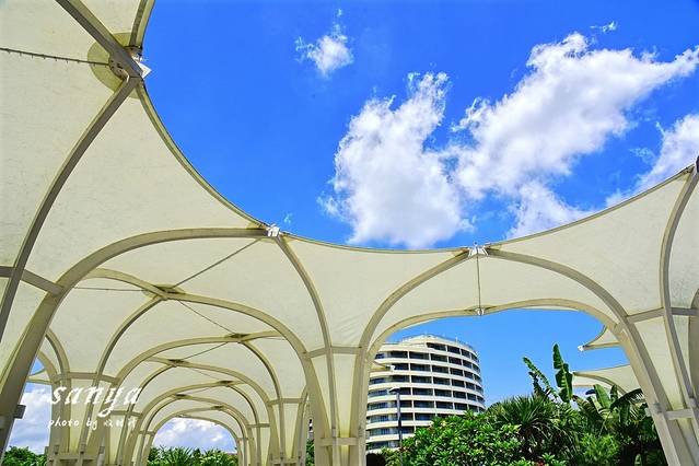 本来之前计划的行程规划是今天先到鹿回头山顶公园一览三亚全貌,鹿回头山顶公园坐落在三亚西南端鹿回头半岛内,三面环海,一面毗邻三亚市区,相传远古时候有一位黎族青年猎手,他追一只坡鹿来到南海之滨,前面山巅悬崖之下便是茫茫大海,坡鹿无路可走,青年猎手正张弓搭箭,忽见火光一闪,烟雾腾空,坡鹿回过头来变成一位美丽的黎族少女,两人遂相爱并结为夫妻。此山因被称为“鹿回头”,也成为青年男女海誓山盟的情山。因此三亚市也因此被人们称为“鹿城”。《三亚千古情》演出里就浪漫的还原了这一幕,非常值得一看。由于出行之前答应了帮几个好友代购免税美妆品,刚好今天是三亚海棠湾免税城全部8.5折的日子,而且全年仅此一天,不知道是幸运还是不幸,所以不得已只能先到免税城去“血拼”了。海棠湾免税城以“海棠花”为造型的建筑外观大气磅礴,横跨东西的透明长廊将免税店的 A、B 两区紧密相连,A 区集中了女生们最爱的化妆品和各类箱包,尤其是美妆区,狂热的人潮把海量的免税店塞得满满当当,看到每家店疯狂排队的人群我已经开始绝望。免税店的营业时间从早上10点开始,直到22点结束,建议上午10点准时到达采购,或是下午 5 点以后再前往,人流会相对少一些,尤其是团队游客此时已离去,排起队来会更加轻松。PS:建议去免税城的可以先下载cdf离岛免税的APP,很多商品可以直接在手机上选购提交订单,优惠活动和店内一样的,同样支付了后在机场提货,这样可以省去很多排队时间,尤其是遇上搞活动的这个时段,排队结账绝对是一种对耐性的修行。