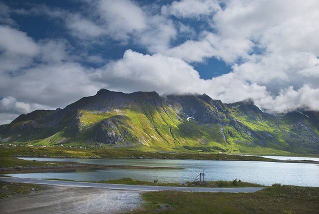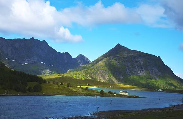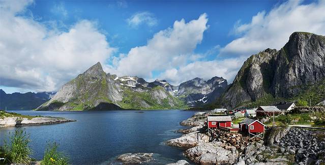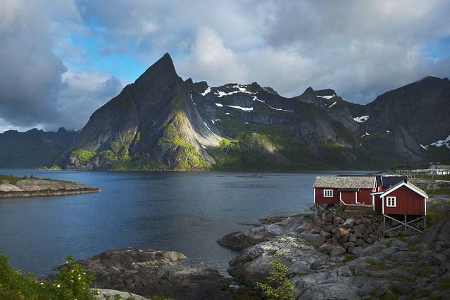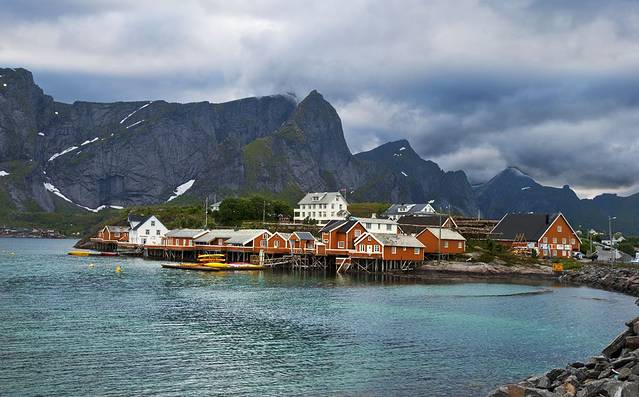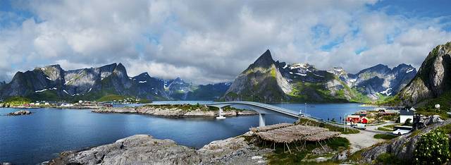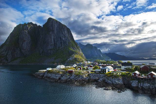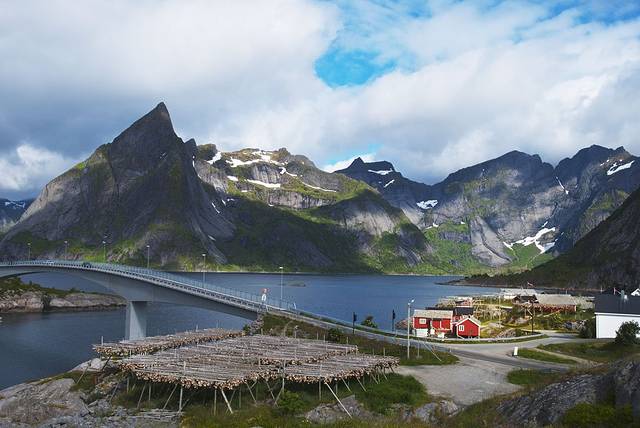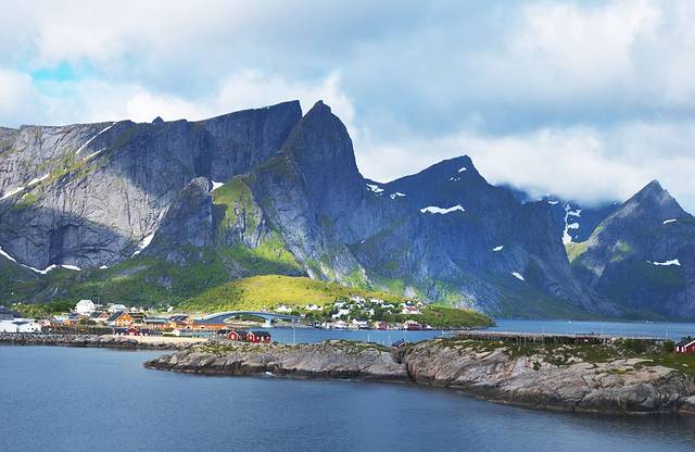 度娘说罗弗敦群岛(Lofoten)是由上古的冰川雕琢而成的。这个“雕琢”用得太妙了,高耸的群山包围着多姿的海岸,星罗棋布般点缀着精巧的挪威红色木屋,雪山极昼,午夜阳光,还有全世界质量最好的鳕鱼。这里就是仙境,是天堂,是大自然精雕细琢之后送给人间的最美礼物。E10公路像根链子,每个小岛就是珍珠,这串精美的天然项链似离非离地镶钳在挪威大陆西北方,让每一个来挪威的游客无不为之向往。