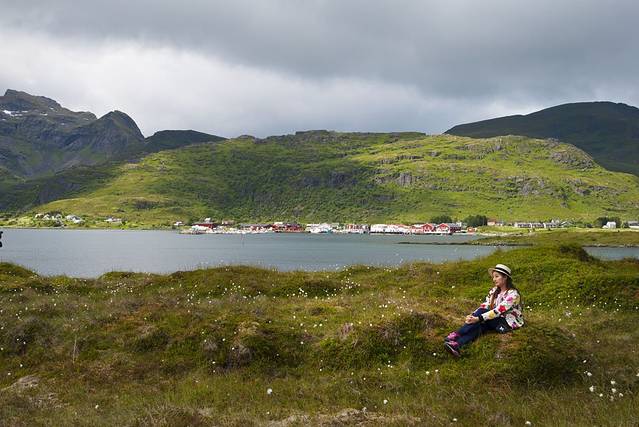 饭后到Hamnoy村的另一端去玩儿下,坐在山坡上欣赏着眼前的小村、海湾,山峰,静静的,清清的,美好画面令人陶醉,休闲惬意令人满足。