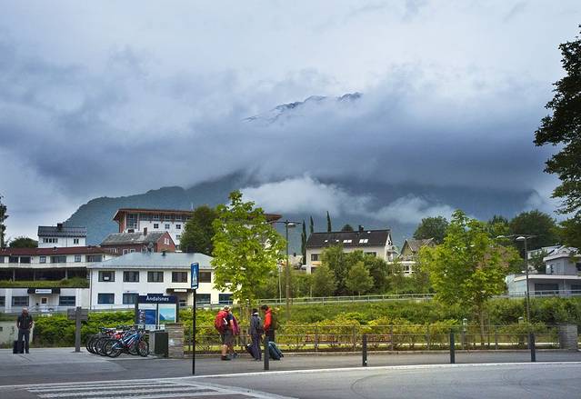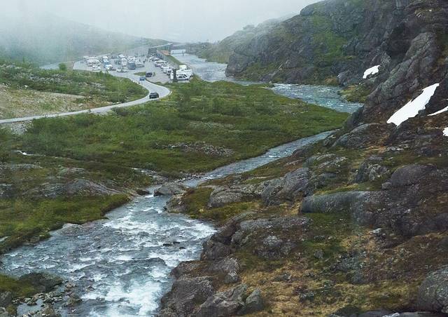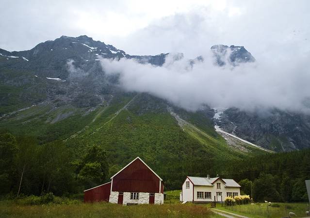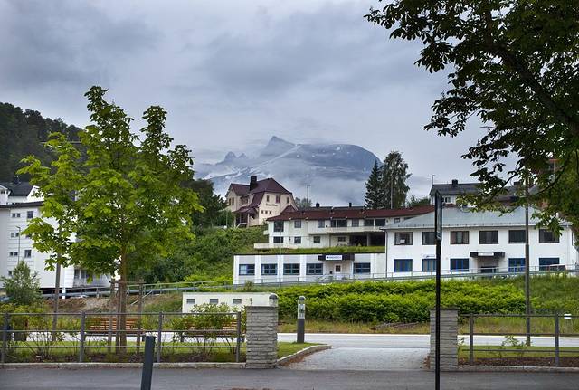 终点的翁达尔斯内斯是一个峡湾深处的美丽小镇,面临峡湾,背靠雪山,让小镇美得极致,但今天她就像披了面纱的美人,总要让我想像着掀开面纱的惊艳。