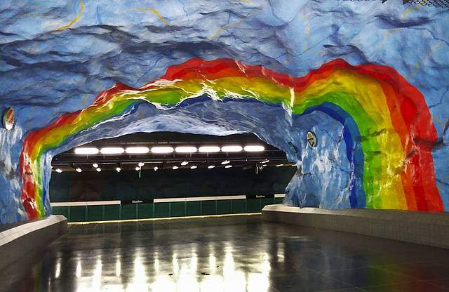 为纪念1912年斯德哥尔摩奥会化而设计的彩虹站台Stadion站
