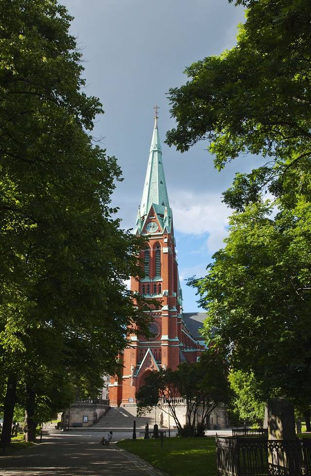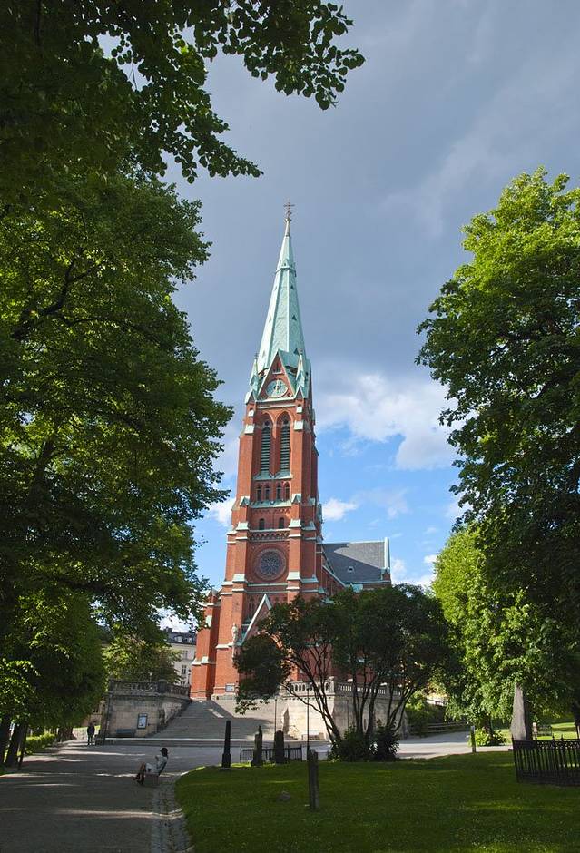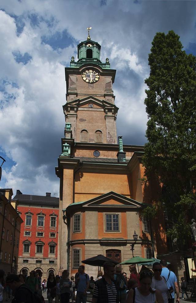 又被克拉拉教堂的色彩和尖顶吸引过来,在一个小花园里面,教堂始建于1280年代。在1527古斯塔夫•瓦萨统治时期,旧教堂被毁。现在的教堂修建于1572年约翰三世统治时期。