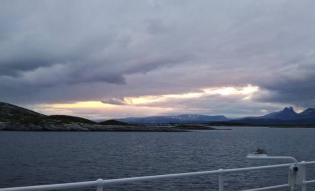 回去的渡轮由于海流的关系要4小时到,接近午夜时分到甲板上拍了两张,没有太阳只有云。