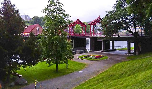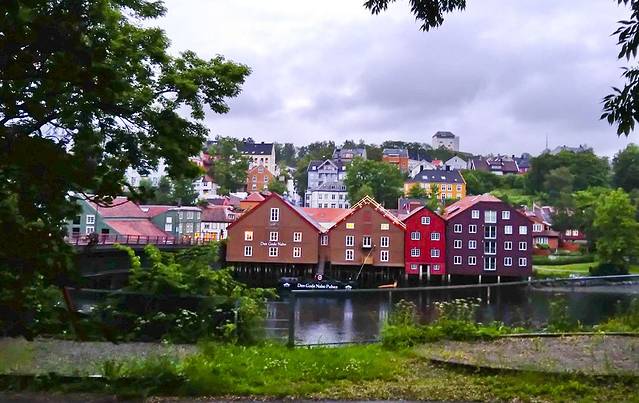 在Dombas倒车,到达特隆赫姆的NSB火车晚点了一个小时多,这挪威在这方面可真是不能与瑞士等其它欧洲国家相比。一直晚下去有点担心11:40发车的夜火车呢。好在一个小时后火车终于来了,晚10:10到达特隆赫姆,她是挪威第3大城市,也是个漂亮的地方。利用间隔的一小时,抓紧到市内走一圈。