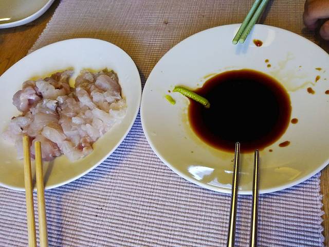 回来黑雪鱼切成片,沾着国内带的辣根和酱油,入口柔滑的感觉有点像三文鱼,非常新鲜。