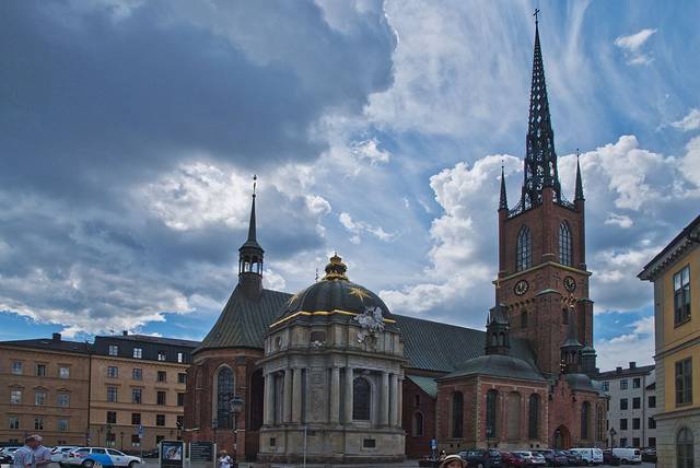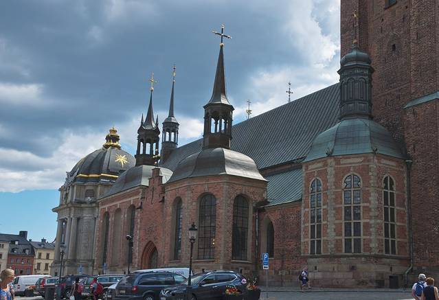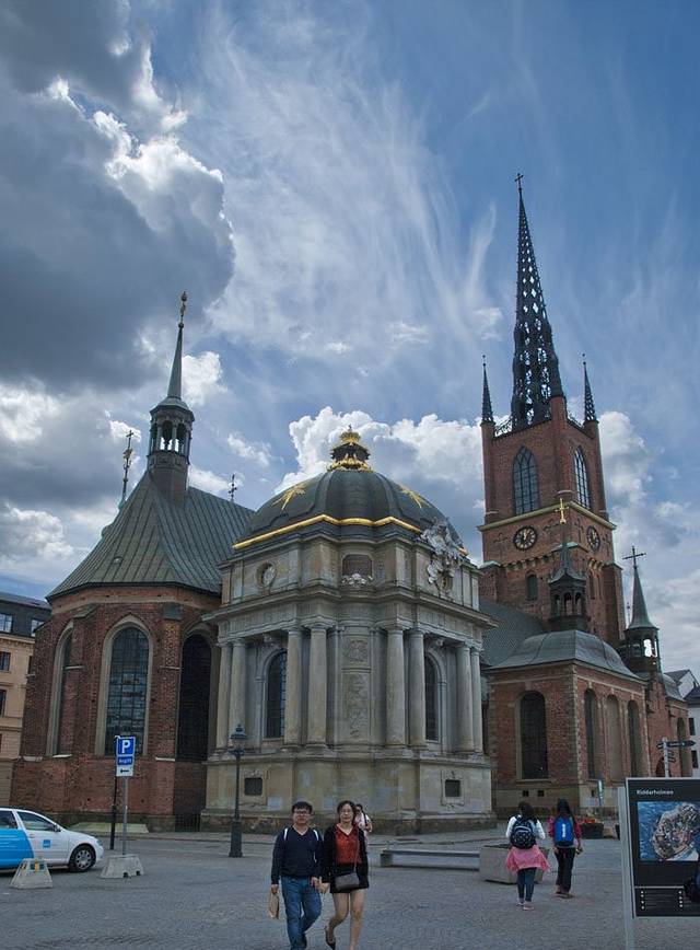 转身向上是骑士教堂,用于安葬瑞典君王。1835年7月28日,教堂尖顶被闪电击毁,后来重修就加了这个镂空的铁铸尖顶。