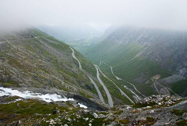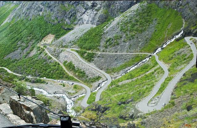 到达精灵之路观景台给了半小时观景时间,快步跑过一个琉璃咖啡馆还是饭馆,反正不管它,岩壁上的观景才是我的最爱。观景台有几层,几条栈道,根据大巴给的时间一定要抓紧观赏和拍照,到比较上面的观景台,才可见到更美的景色,虽然天雾雾的,但眼前的野性山峰,大块的凸兀岩石,都给人视觉上的强烈冲击。巨大水流的狂野瀑布不仅撞击着眼球,同时也震撼着我的心灵。再看远处那蒙胧的山谷,望不尽顶部的雪峰,脚下是无数个之形的精灵之路,眼前这一切真的是此生难得一见。多年的出行总是不服国外的自然景观,坚持我大中华的自然景观不输给任何国家,就连刚才的老鹰之路我亦不以为然,可此时我不得不承认,这种原始野性的磅礴大气,的确可以与我国的秀美精致有的一拼。