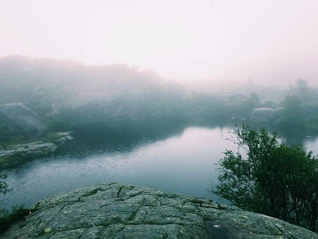 挪威夏日气温一般在十七八至二十度左右,下雨还会更冷些,经常是忽晴忽雨的天气。而且风大,雨伞没用,冲锋衣裤是最适合的服装,薄厚合适又可防雨。 防水防滑鞋,超轻小羽绒服都是必要的。