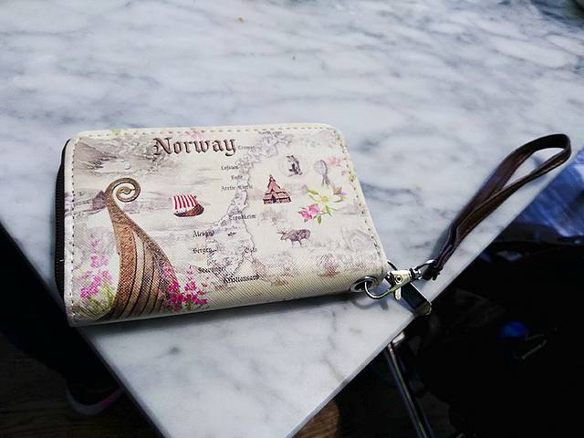 一个多小时的飞行,这挪威航空什么吃喝也没给。在奥斯陆有3个小时的转机时间,机场好大,好歹这也是一国首都的国际机场。买了点吃的和饮料,把剩下的挪威克朗买了个钱包,很喜欢。