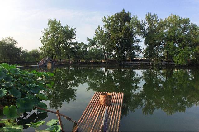 桥两边都有荷叶,夏天红绿相间,蓝天白云倒映湖面一定更美。