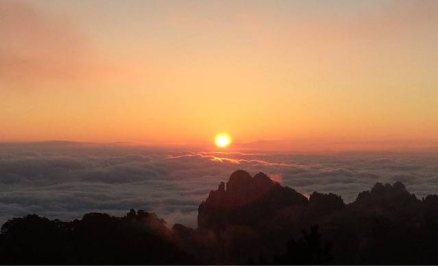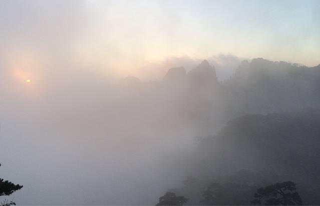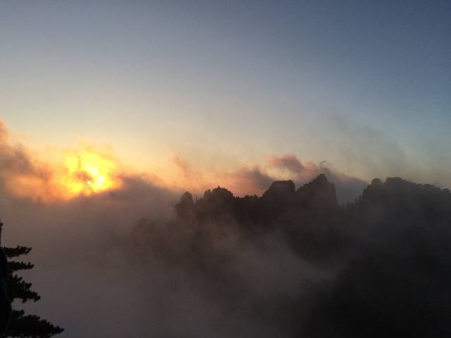 定的是狮子峰看日出,不过天还没亮,我也不知道哪是哪,还在一个观景台摔了一跤,好险好险,幸好没受伤,出门在外受点伤就麻烦了。最后找了另一个观景台看日出。早上大雾,在大家都快放弃的时候,雾总算散开了。