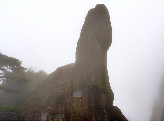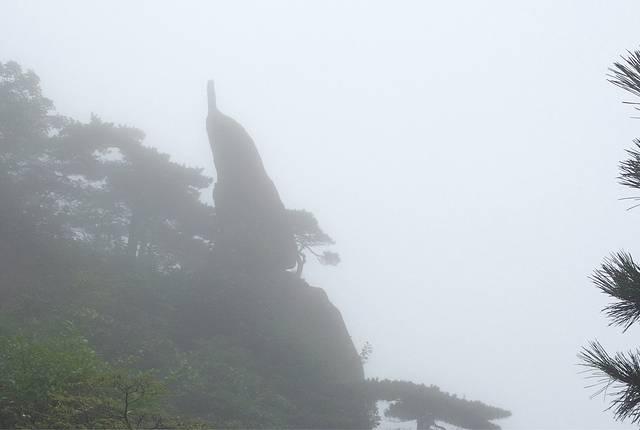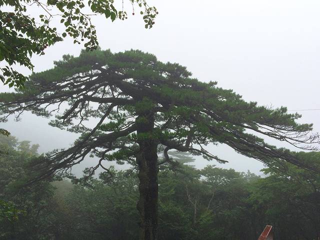 路上第二棵松,可能是黑虎松。由于下雨,上了山都是雾,导游告诉我们今天可能看不到什么了,心情瞬间不太好了。加上走一半我背包拉链开了,检查半天掉了什么,所以这程路我都是迷迷糊糊,什么松什么松彻底不记得了。