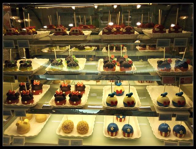 甜蜜满勺甜品店就在迪士尼商店对面,特色就是这些好看好吃而且好贵的 —— 糖苹果。