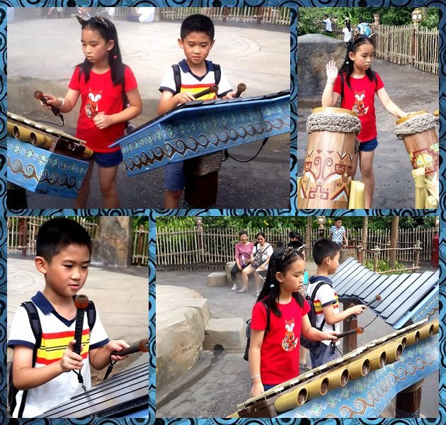 这里是宝藏湾还是探险岛,方位我也没搞清楚,反正两个小家伙看见这些乐器就玩儿上了。