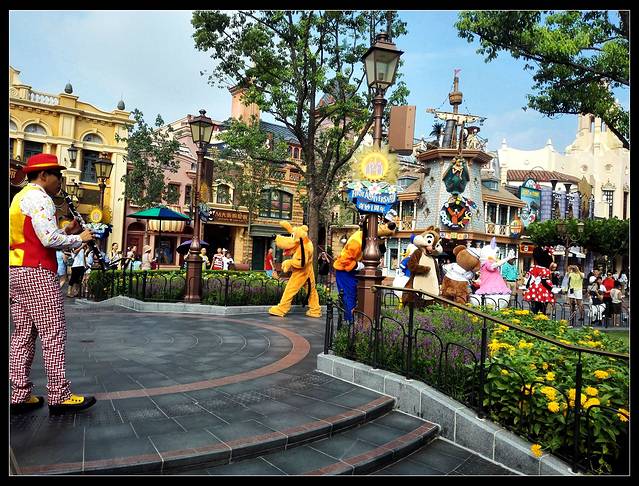 米奇大街上,迪士尼的朋友们载歌载舞欢迎游客朋友们,可是又有多少游客是愿意停下来跟他们打个招呼的呢?