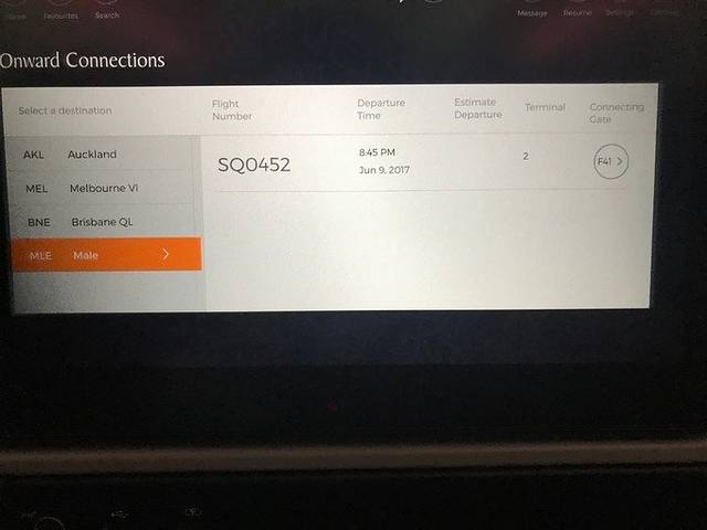 乘务员会提醒转机的乘客,看转机信息,最好拍下来,以防万一,飞机上大多数都是去马累的,旅行嘛可以多与人交流,我们就很幸运的和一对老年夫妇相同的行程,和他们侃侃而谈,也是异国他乡那种温暖的感觉