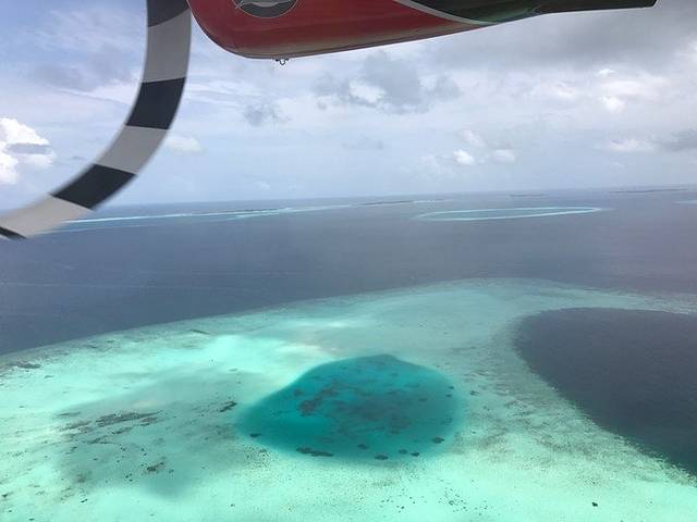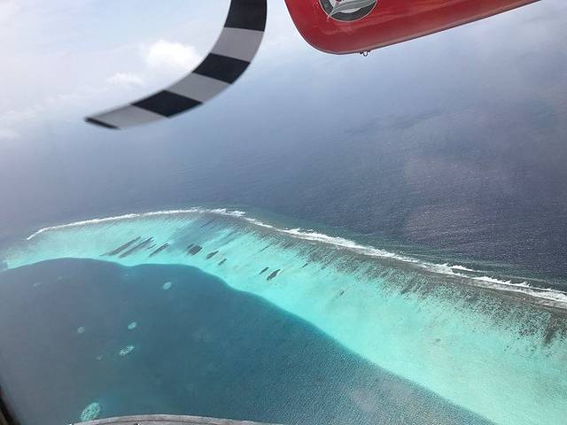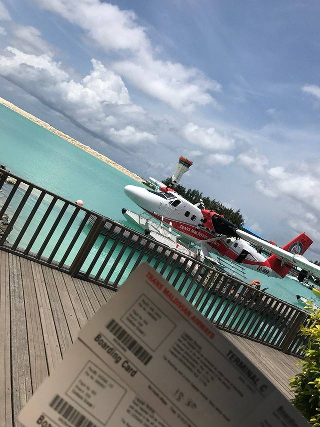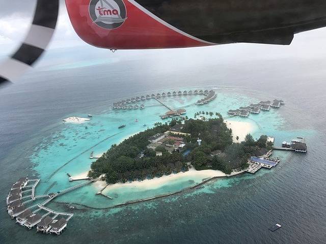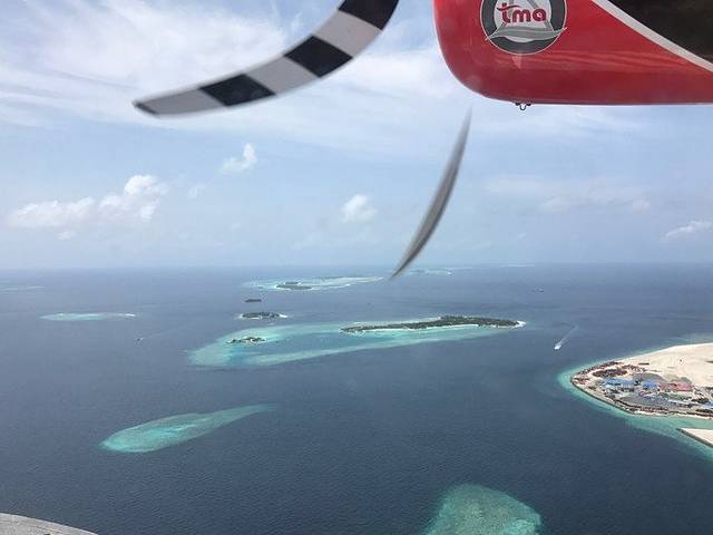 到了马累,我们是水飞上岛,水飞声音很大,一定要准备好耳塞,同时水飞的风景也是很美的,可以近距离看到沿途的每个小岛。