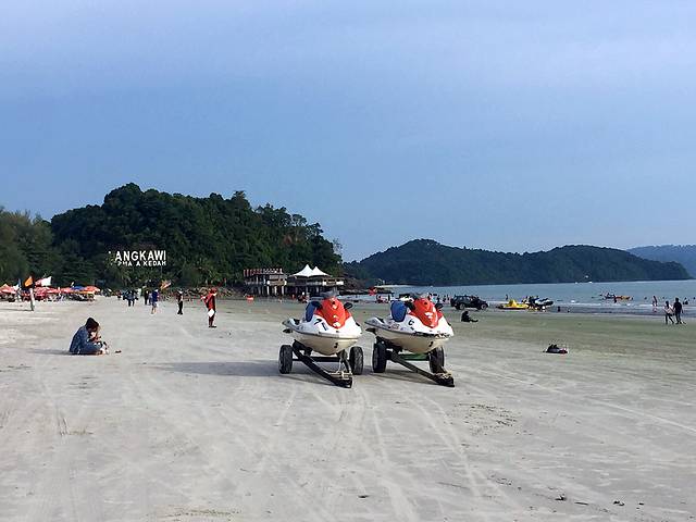 名副其实的黑沙,海水很蓝,很清澈,比珍南海滨的水清多了,沙子细软不扎脚,这里几乎没什么人,沙滩面积非常小,建议千万不要把沙子往身上涂或者坐在沙滩上,因为黑沙非常的细,附在衣服里很难洗掉,如果只是单纯的在水里还是没什么沙子,马来每个洗手间的右手边都会有一个水龙头,应该是冲洗PP的,所以上岸后我们找了个厕所,不远,就1分钟走到了,把身上的海水和沙子冲洗了一下,换上衣服去往下一个地方,我们是租车一路沿着送的地图去往兰卡威岛上的景点,确实不管你住在岛上的哪个地方,去任何一个地方相差都只有15-30分钟车程,这里不得不说淡季的时候租车真心便宜,我们租的小的两厢车,跟丰田的雅力士差不多大小吧,三天才100马币,英文好的话估计还可以跟他砍价
