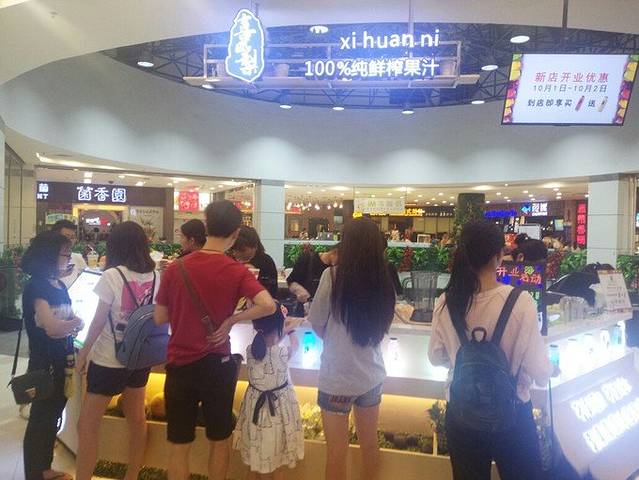 3楼新开了一个喜凤梨,买一个饮料都送火龙果+凤梨。