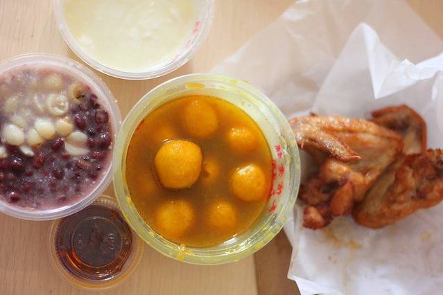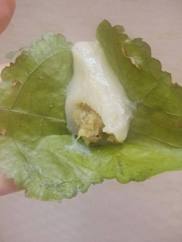 有一个糯米糕,里面包着椰蓉和姜丽的小点行。我真是又爱又恨吧,因为我不爱吃姜,然后又很爱吃椰蓉,所以又好吃又不好吃,搞得我都糊涂嘞。