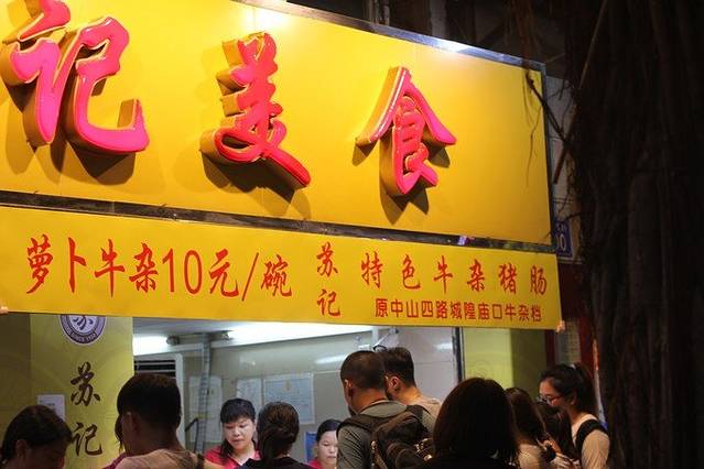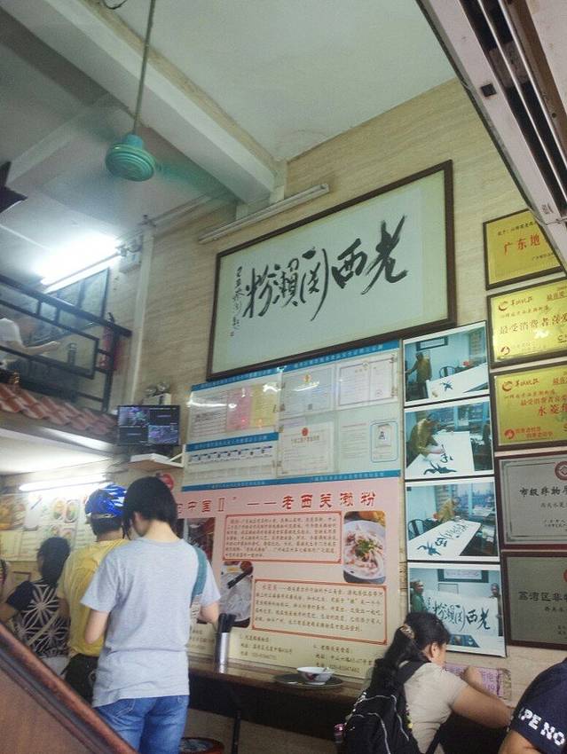 沿着百花甜品店的外面那条走路一直走那一趟街都是好吃的。然后我们就发现了老西关濑粉。排队的人当时不是很多,我们看到有个空桌子,就先坐上去。二楼还有位置,我们直接就没上。然后渐渐的人就多了起来。还有那种本地的老太太直接拿着自己的不锈钢盆去打。