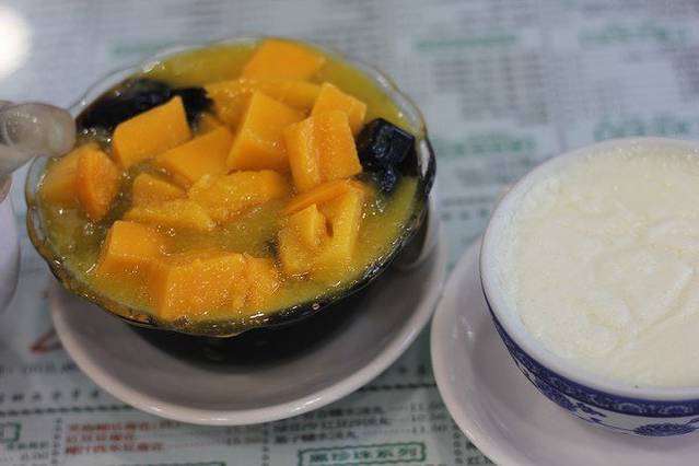 我们点了杏仁豆腐和芒西马蹄爽。