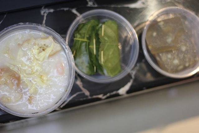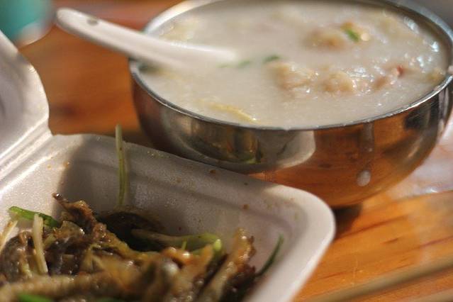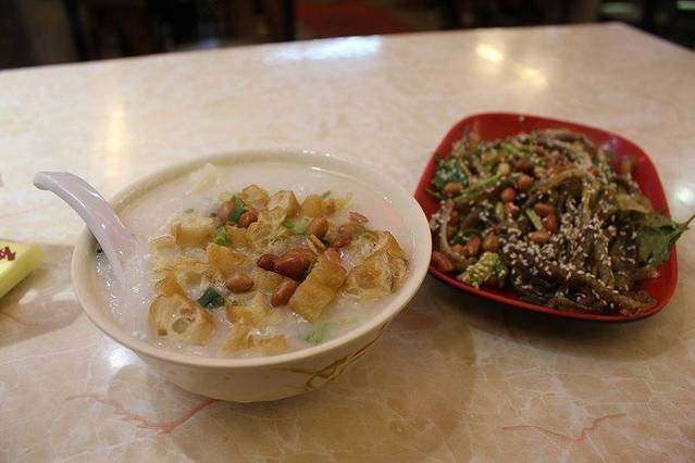及弟粥:里面的料是猪肝、熟肠、鱼片!!好多料才十元,他赠送的特制酱汁,跟味极鲜是的倒进粥里更加的好喝,好温暖哦,好像天天都喝上一碗哦!猪肝超嫩滑!!熟肠特别香。我们明天早晨决定还吃!然后要猪肝肠和熟肠+猪肝粥!!!好喜欢这两个!!!