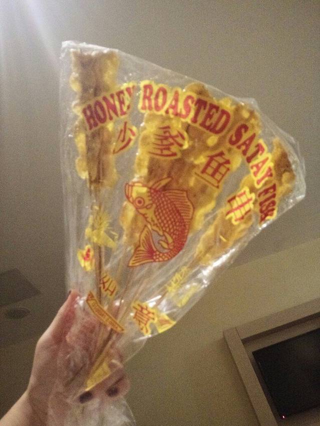 有一种美国那个辣鱼片儿的但是又没有人家辣但是比人家腥了很多,第一口吃起来臭臭的好难吃,可是越吃越上瘾我这一包儿晚上回酒店的时候一会儿就解决掉了。嘻嘻嘻嘻。