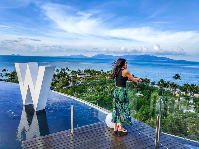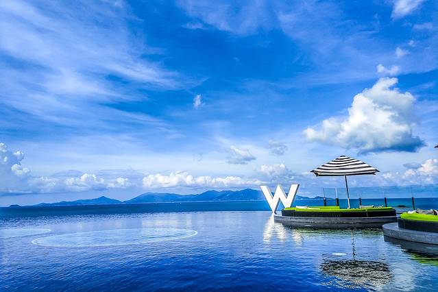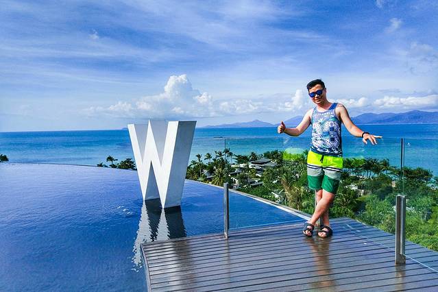 初见W,在一个小山坡上,比乡村大酒店还要安静,这个是W的WOOBAR,住宿在山坡下面,推门便是沙滩
