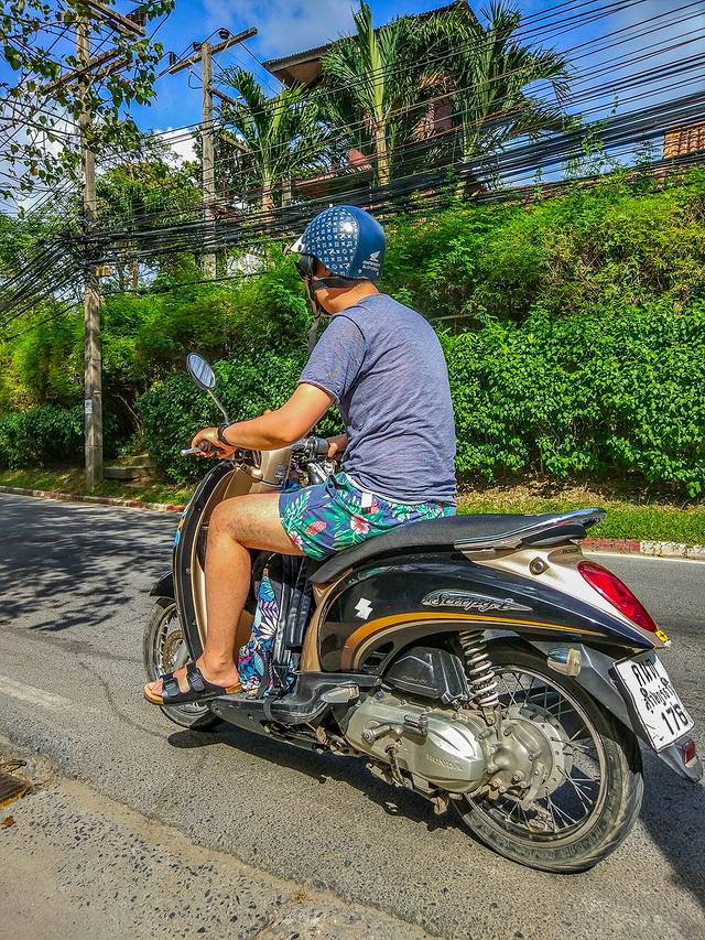 一大早起来在酒店边上租摩托了,150泰铢一辆的,加油站加油加50泰铢就行了