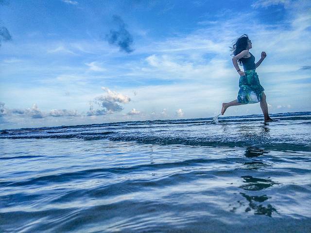 人字拖就有点小失望了,沙子不细,有点扎,这里海浪很小,比查文小很多