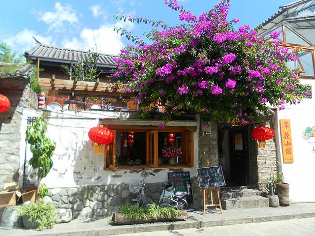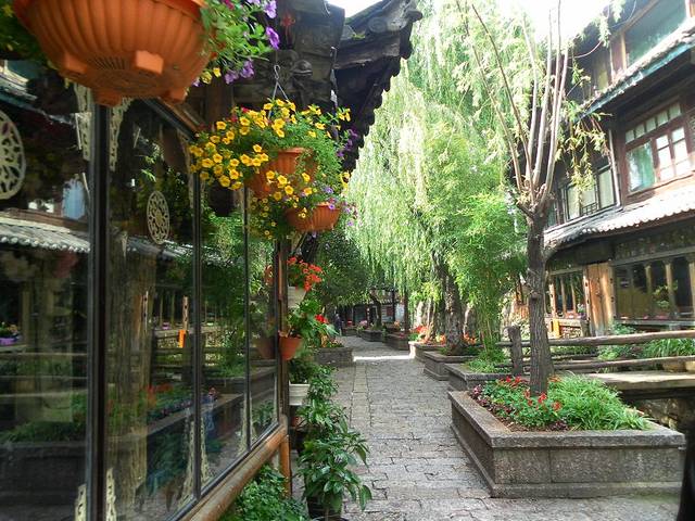 丽江古巷漫步缓,且听鸟语嗅花香。