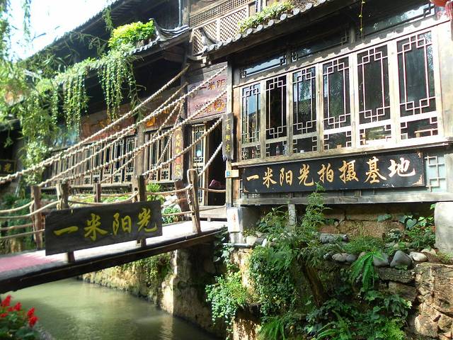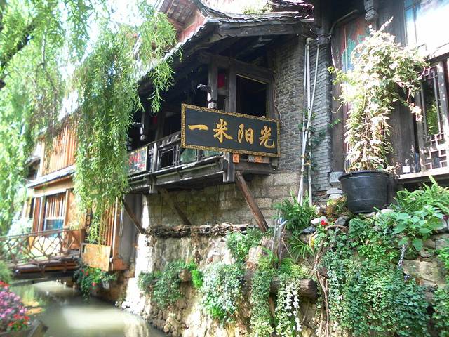 第二天早上睡到自然醒,然后起床洗漱完毕,在酒店楼下简单的吃了点早餐——云南过桥米线,味道很美!然后乘27路公交车,在机场路口站上车,到南门街下,也可到忠义市场或白龙广场下,步行至丽江古城。27路公交车站牌不好找,可以咨询一下当地居民或者是交警同志。公交全程3元,不设找零,所以要提前准备好零钱。当然也可以做机场巴士。大概11:00左右,到达南门街,下车直行便是丽江古城的入口,丽江古城有很多个入口,均可以进入古城内。