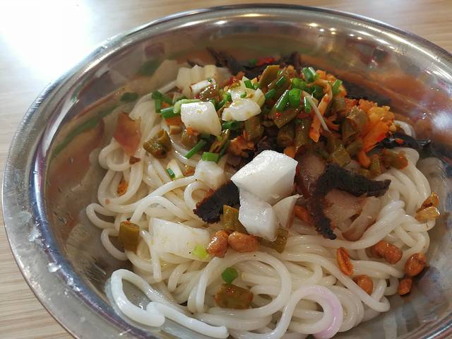 早餐我们选择在日头火吃的卤菜粉(就是桂林米粉),直接跟服务员说要2两卤菜粉就好,4.5一晚,如果你胃口大,可以要3两的,6块钱。他们的小配菜是自助添加的,你想吃哪种想吃多少就自己添。