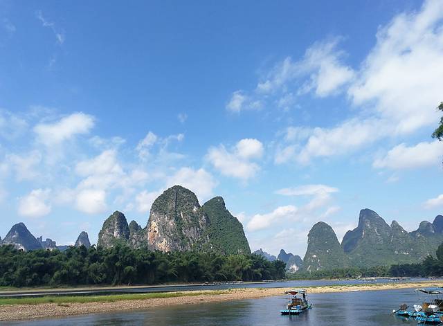 不过漓江真的很美,正好早上不是很晒,蓝天,绿水,青山,包围着,心情很是愉快与惬意。