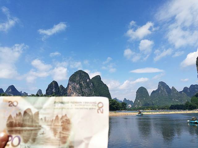 如果想去20元人民币风景取景地拍照,到了兴坪古镇路口,会有一些自己改装的小货车拉客,一人五块钱,送到20元取景地,然后会给你差不多20分钟拍照,再送你回来。